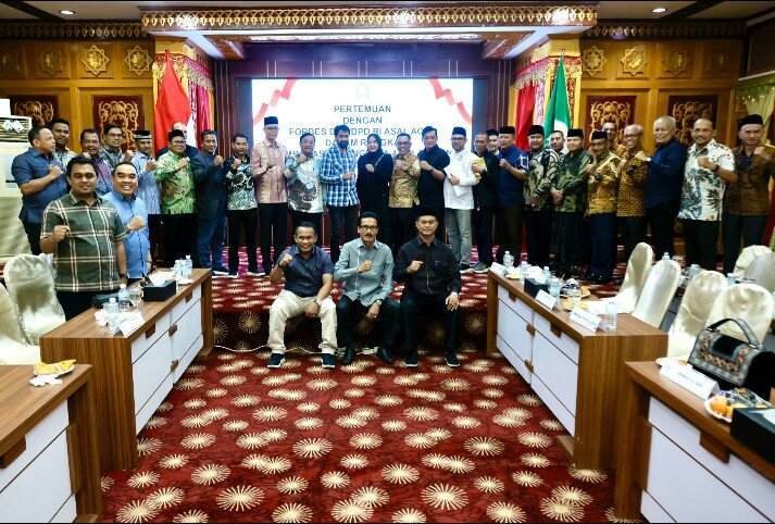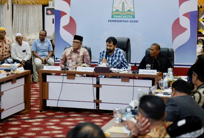 RajaNews.Xyz | Banda Aceh – Gubernur Aceh, Muzakir Manaf (Mualem), menggelar rapat khusus bersama anggota FORBES DPR dan DPD RI asal Aceh, membahas isu penting terkait status kepemilikan empat pulau di wilayah perbatasan Kabupaten Aceh Singkil (Aceh) dan Kabupaten Tapanuli Tengah (Sumatera Utara), Jumat malam (13/6/2025). Pertemuan itu juga melibatkan pimpinan dan anggota DPRA, para ketua fraksi DPRA, para ketua partai politik, Plt. Sekda Aceh, para kepala SKPA dan kepala biro, serta rektor perguruan tinggi dan ulama.