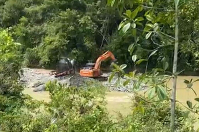 “Saya melihat, alat berat itu sedang bekerja untuk dugaan penambangan. Excavator terlihat mengobrak–abrik aliran sungai,” kata sumber.