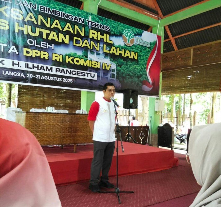 RajaNews,Xyz | Kota Langsa – Anggota DPR RI dari Fraksi Golkar, H Ilham Pangestu membuka acara sosialisasi dan bimbingan tekhnis (Bimtek) Rehabilitasi Hutan dan Lahan (RHL), di RTH Hutan Kota, Rabu 20 Agustus 2025.