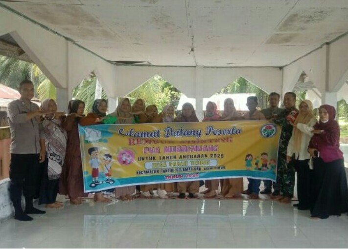 RAJANEWS.Xyx | Rantau Selamat, Aceh Timur – Babinsa Koramil 03/Rantau Selamat Serka Sigit Pramono menghadiri kegiatan Rembuk Stunting (Pramusrenbang) di Desa Sarah Teube, Kecamatan Rantau Selamat, Kabupaten Aceh Timur, Kamis (23/10/2025).