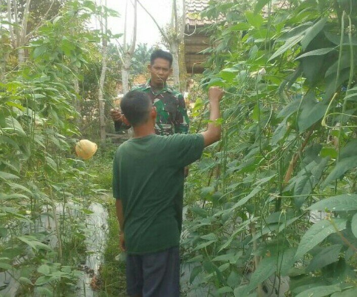 Babinsa Koramil 11/BRB Dampingi Petani Rawat Tanaman Kacang Panjang di Jambo Labu