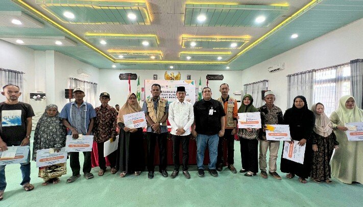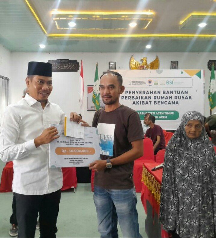 Bupati dan Wakil Bupati Aceh Timur Serahkan Bantuan Stimulan Perbaikan Rumah kepada Warga Terdampak Bencana.
