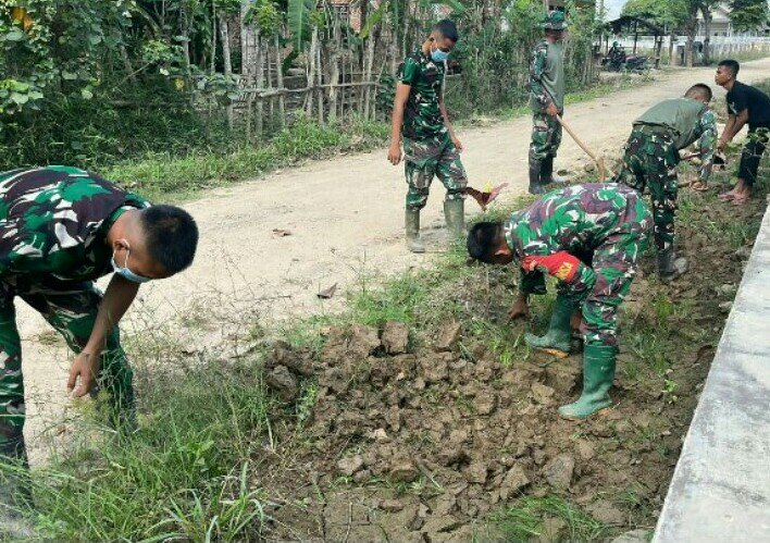 Cegah Genangan Susulan, Prajurit Yonif 853/BRB Gotong Royong Bersama Warga
