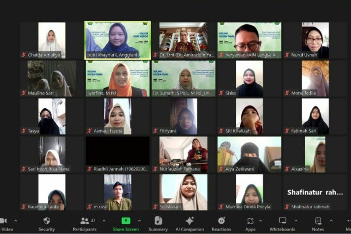 Hadir sebagai narasumber Dr. Suharti, S.Pd.I., M.Pd., Dosen PG-PAUD Universitas Negeri Surabaya dan Direktur Yayasan Pendidikan Islam La Tahzan Cirebon, yang juga berpengalaman sebagai kepala KB, TK, hingga SD. Kegiatan dimoderatori oleh Ibu Syarfina, M.Pd., dosen pengampu mata kuliah Kepemimpinan.