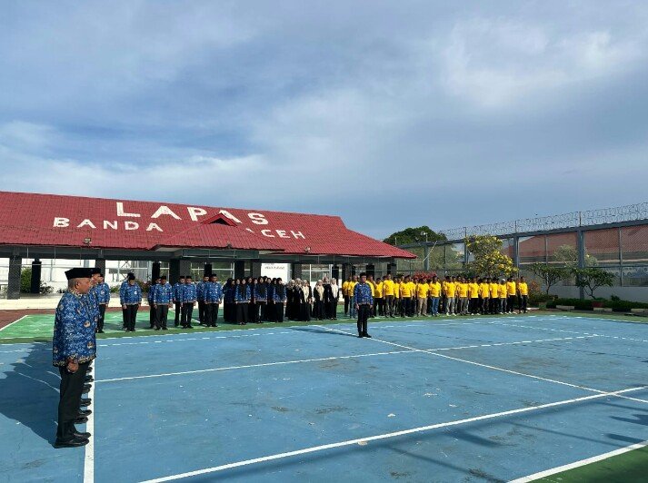 Kepala Lapas Kelas IIA Banda Aceh, Edi Cahyono, bertindak langsung sebagai Inspektur Upacara dan Kasubsi Bimkemaswat sebagai Komandan Upacara.