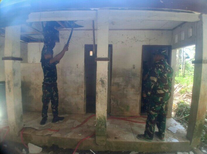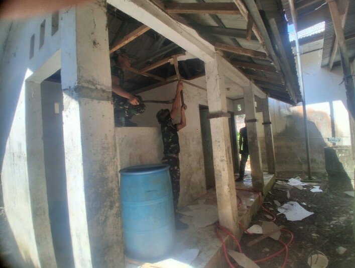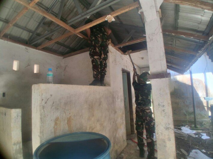 Pada tahap awal perehaban, personel Satgas melakukan pembongkaran bagian plafon bangunan MCK yang selama ini dinilai sudah tidak layak dan berpotensi membahayakan pengguna. Pembongkaran dilakukan secara hati-hati guna mempercepat proses perbaikan tanpa merusak struktur utama bangunan.