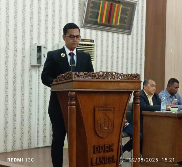 Rapat Paripurna DPRK Langsa yang digelar pada hari ini dengan agenda jawaban Pemerintah Kota Langsa atas penyampaian pandangan umum Fraksi-Fraksi DPRK Langsa terhadap Rancangan Qanun (Raqan) Kota Langsa Tahun 2025 yang akan di sampaikan oleh Walikota Langsa Jefry Santana S Putra, SE.