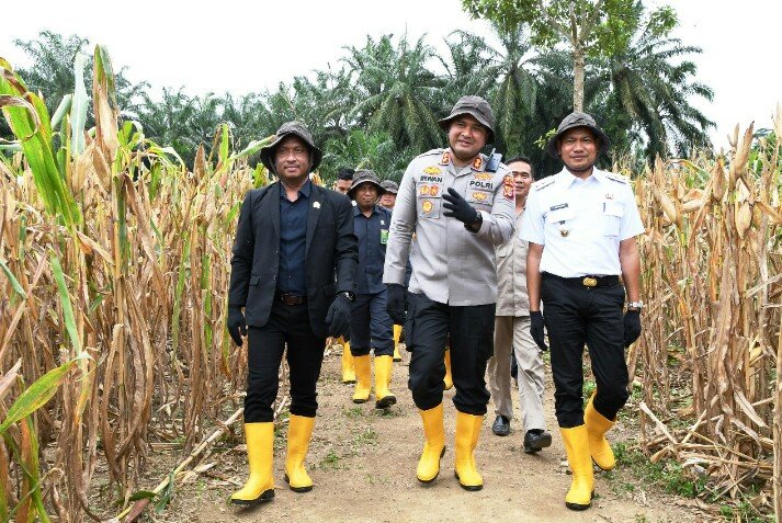 RajaNews.Xyz | Kapolres Aceh Timur, Polda Aceh, AKBP Irwan Kurniadi, S.I.K. didampingi Wakil Bupat Aceh Timur T. Zainal Abidin, S.Pd.I.,M.H. dan sejumlah unsur Forkopimda yang lain menggelar Panen Raya Jagung di Desa Seumanah Jaya, Kecamatan Ranto Peureulak, Kabupaten Aceh Timur, pada Kamis (05/06/2025).