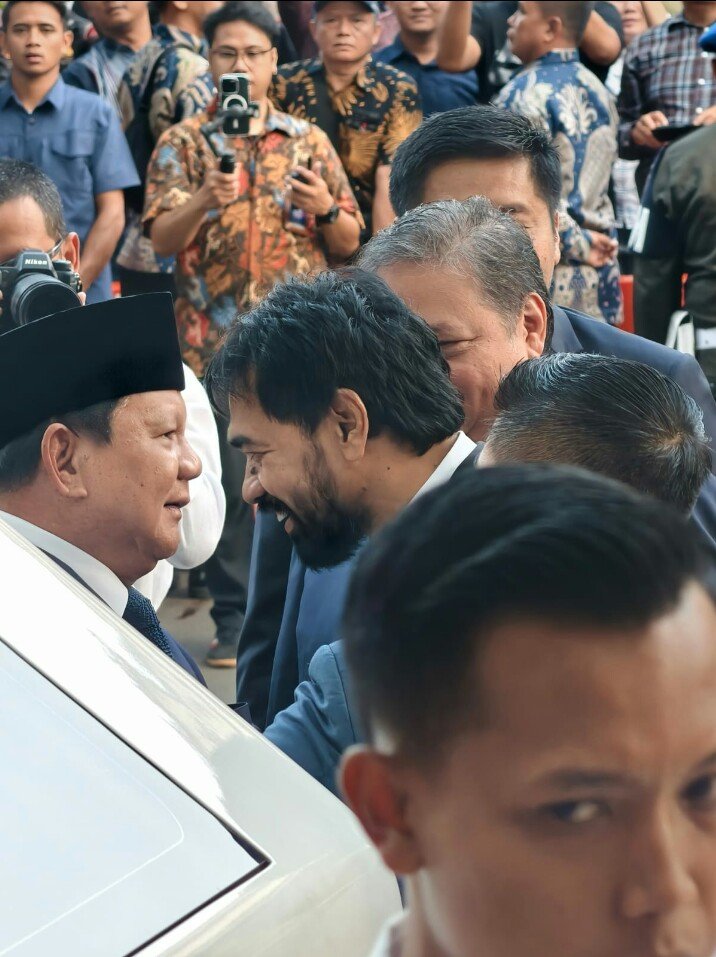 Muzakir Manaf, yang mengenakan setelan jas hitam, tampak antusias mengikuti kegiatan bertaraf internasional yang secara resmi ditutup oleh Presiden Prabowo Subianto.