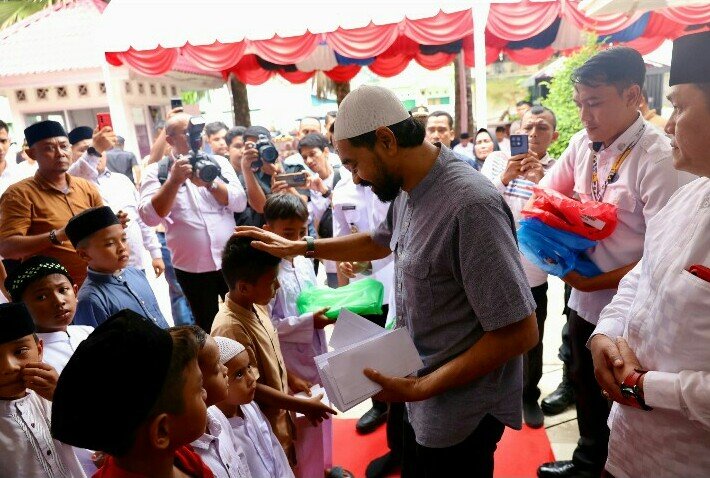 RajaNews.Xyz | Meulaboh – Gubernur Aceh, Muzakir Manaf, yang akrab disapa Mualem, menyantuni 1.000 anak yatim di halaman Pendopo Bupati Aceh Barat, Kecamatan Johan Pahlawan, Aceh Barat, pada Rabu siang, 4 Juni 2025.