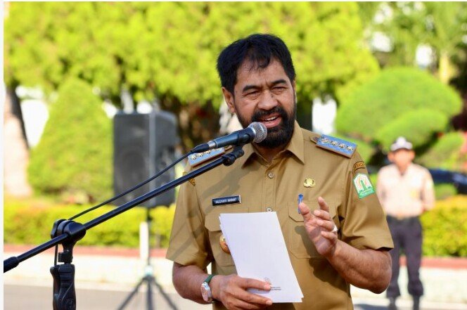 RajaNews.Xyz | Banda Aceh – Gubernur Aceh, H. Muzakir Manaf, memimpin apel pagi di halaman Kantor Gubernur Aceh, Selasa (08/04/2025), yang diadakan setelah perayaan Hari Raya Idul Fitri 1446 H.