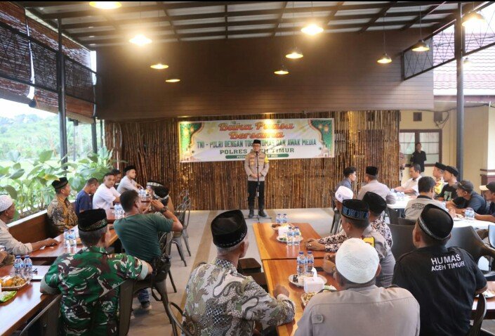 RajaNews.Xyz | Aceh Timur – Dalam rangka mempererat sinergisitas dan kebersamaan, Polres Aceh Timur, Polda Aceh menggelar acara Buka Bersama dengan unsur TNI (Kodim 0104/Atim), Tokoh Agama, Tokoh Masyarakat, Perangkat Gampong dan para Ketua Organisasi wartawan dalam wilayah Kabupaten Aceh Timur Kamis, (20/03/2024) sore.