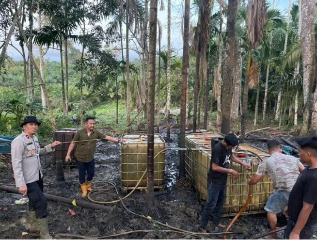 “Pelaku melakukan penggalian menggunakan mesin bor hingga menghasilkan minyak mentah yang disedot dan ditampung dalam kolam buatan. Minyak tersebut kemudian dipindahkan ke tangki fiber untuk dijual. Aktivitas ini sudah berlangsung selama dua minggu,” ungkap Kasat Reskrim.