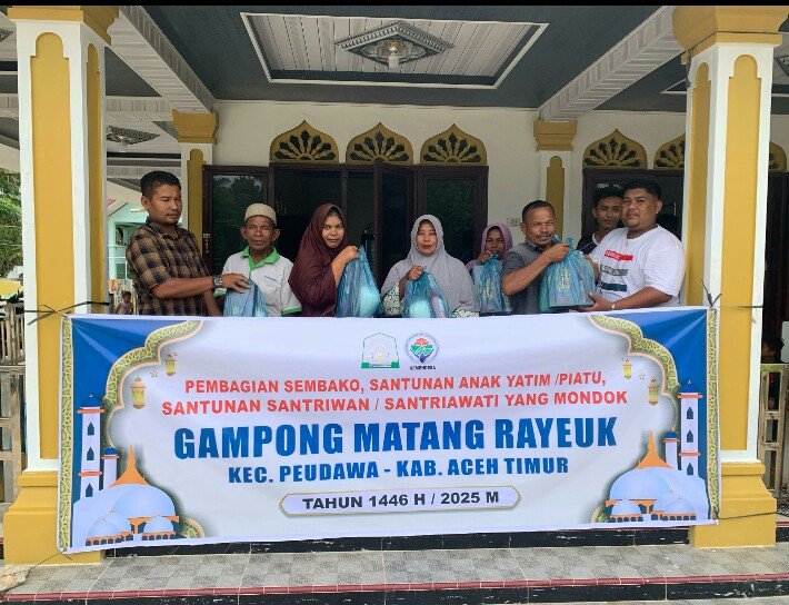 RajaNews.Xyz | Aceh Timur – Momentum bulan suci ramadhan dan menyambut Hari Raya Idul Fitri 1446 H, Pemerintah Gampong Mateng Rayeuk Kecamatan Pedawa , Kabupaten Aceh Timur salurkan bantuan sembako 101 kepada sejumlah warga miskin dan Memberikan Santunan Anak yatim 10 anak yatim piatu.