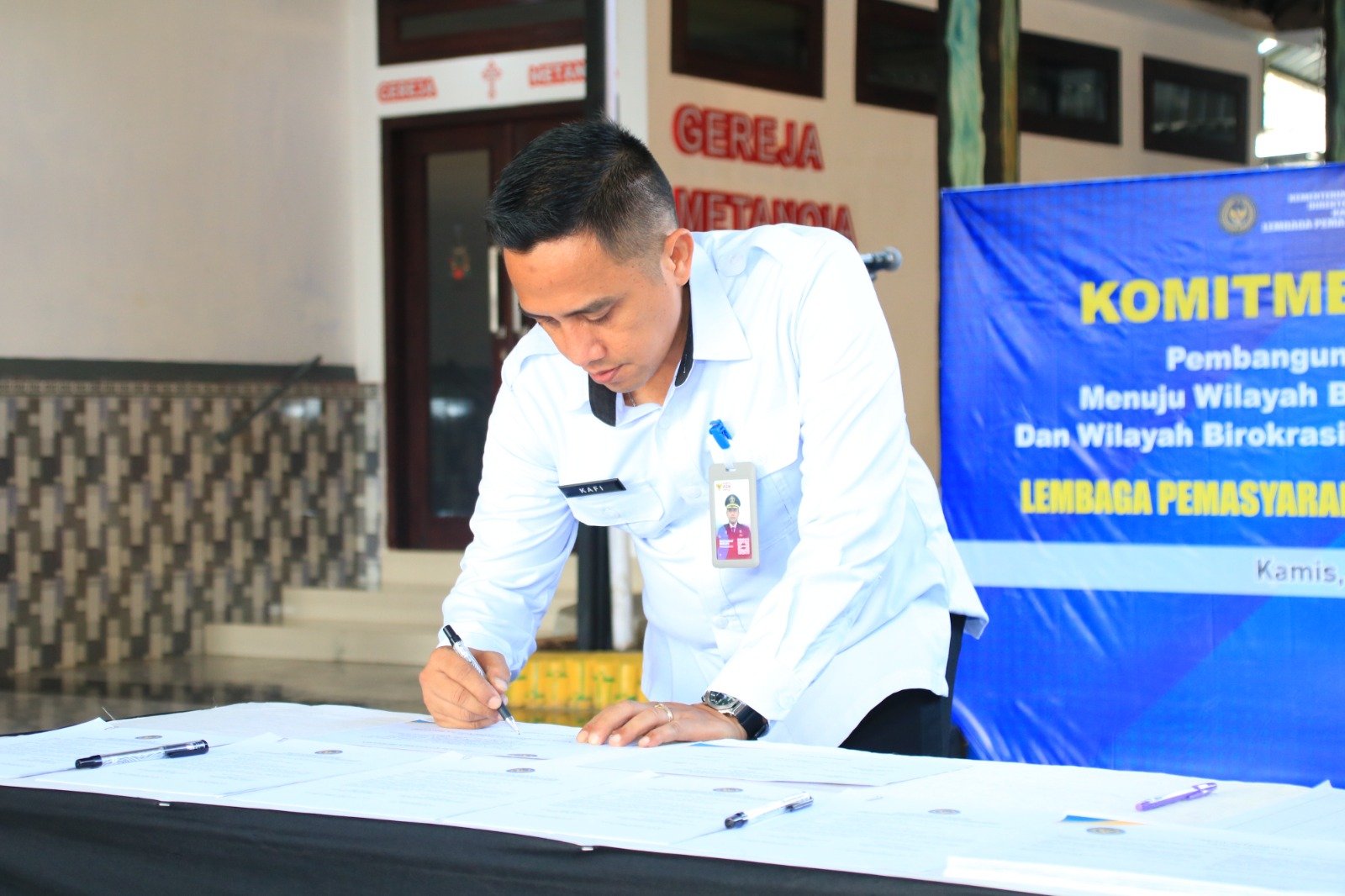 RAJANEWS.xyz | Banyuwangi – Seluruh pegawai Lembaga Pemasyarakatan (Lapas) Kelas IIA Banyuwangi melaksanakan deklarasi janji kinerja, pakta integritas dan penandatanganan komitmen bersama pembangunan Zona Integritas (ZI) menuju Wilayah Bebas dari Korupsi (WBK)/Wilayah Birokrasi Bersih dan Melayani (WBBM), Kamis (23/1).