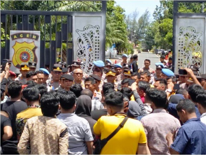 Aksi unjuk rasa yang diikuti sekitar 50 peserta ini berlangsung di depan pintu gerbang Mapolda Aceh, Jalan T. Nyak Arief, Jeulingke, Banda Aceh. Massa yang terdiri dari mahasiswa Unmuha, Fakultas Hukum USK, dan UIN Ar-Raniry tersebut menyuarakan tuntutan terkait peristiwa di Jakarta.