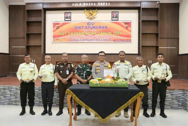 RAJANEWS.XYZ | ACEH TIMUR – Polres Aceh Timur, Polda Aceh menggelar Syukuran HUT Satpam ke-44 Tahun 2024 di Aula Bhara Daksa, Rabu (08/01/2025) pagi. Kegiatan tersebut dipimpin Kapolres Aceh Timur, AKBP Nova Suryandaru, S.I.K. dan dihadiri PJU Polres Aceh Timur, Perwakilan Perusahaan Pengguna Jasa Satpam, dan Perwakilan Satpam dalam wilayah hukum Polres Aceh Timur.