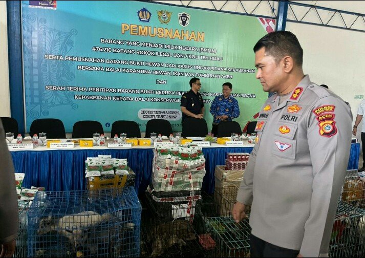 Barang bukti yang dimusnahkan terdiri dari berbagai jenis, diantaranya; 476.210 batang rokok illegal, 7 Koli teh hijau Merk Cha Tra Mue termasuk pemusnahan barang bukti hewan dari kasus tindak pidana kepabeanan bersama Balai Karantina Hewan, Ikan dan Tumbuhan Aceh berupa; 8 (delapan) ekor Kambing Pigmi.