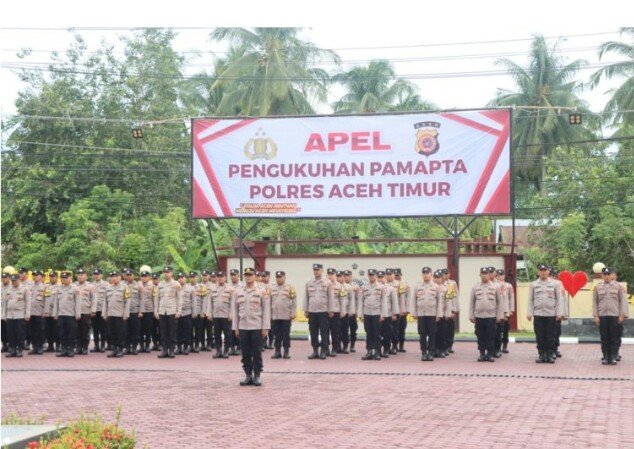 RAJANEWS.Xyz | Aceh Timur – Kepala Kepolisian Resor Aceh Timur, Polda Aceh AKBP Irwan Kurniadi, S.I.K. memimpin Apel Pengukuhan Perwira Samapta (Pamapta) di lingkungan Polres Aceh Timur, Senin, (20/10/2025) pagi.