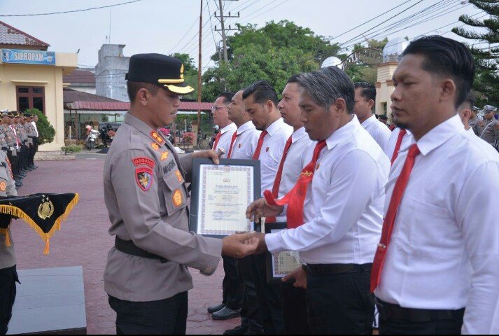 RajaNews.Xyz | Kota Langsa – Kapolres Langsa, AKBP Mughi Prasetyo Habrianto, S.I.K., memberikan penghargaan kepada 14 personel Sat Reskrim Polres Langsa yang berprestasi dalam menjalankan tugas dan pengungkapan sejumlah kasus di wilayah hukum Polres Langsa. Upacara pemberian penghargaan digelar di lapangan apel Mapolres Langsa, Kamis (15/5/2025).