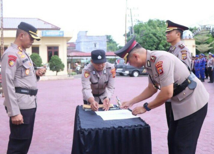 RajaNews.Xyz | Kota Langsa – Kapolres Langsa AKBP Mughi Prasetyo SIK memimpin upacara Serah Terima Jabatan (Sertijab) sejumlah pejabat utama yang dilaksanakan di halaman Apel Mapolres Langsa, Rabu 30 April 2025.