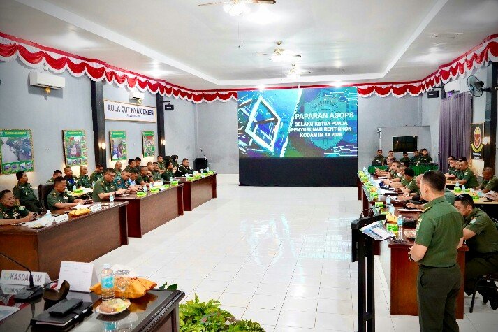 Rapat ini turut dihadiri oleh Irdam IM, Kapoksahli Pangdam IM, Para Perwira Ahli Kodam IM, Para Asisten Kasdam IM, Para Kabalakdam IM serta para Dansat jajaran wilayah Banda Aceh. Kehadiran para pejabat tinggi ini menegaskan komitmen Kodam IM dalam menyusun langkah strategis yang adaptif dan berbasis data untuk menghadapi berbagai tantangan di masa depan.