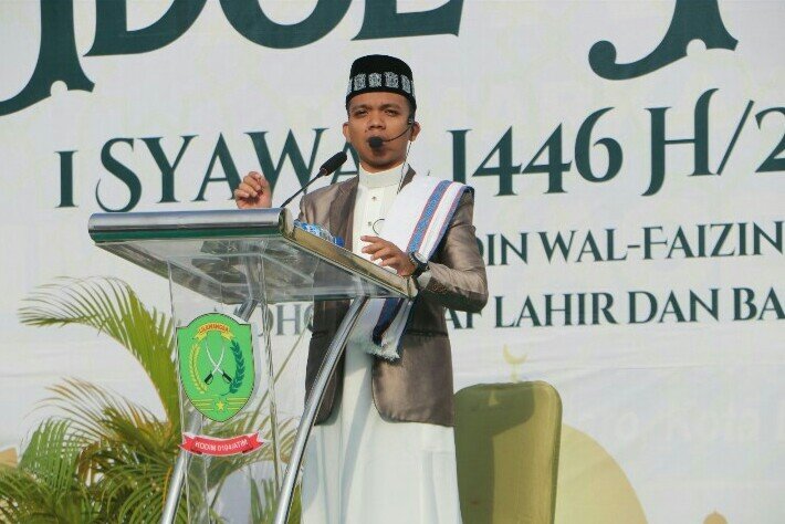 Suasana penuh kekhusyukan semakin terasa saat umat Islam memadati Makodim 0104/Atim dengan mengenakan pakaian terbaik sebagai wujud syukur dan kemenangan setelah menjalani ibadah puasa Ramadan. Sholat Idul Fitri dipimpin oleh Ustad Syaifullah, SE., Ak. yang dalam khutbahnya mengingatkan jamaah tentang kebesaran Allah SWT serta keutamaan malam Lailatul Qadar yang lebih baik dari seribu bulan. Beliau mengajak umat untuk terus meningkatkan iman dan ketakwaan dalam kehidupan sehari-hari.