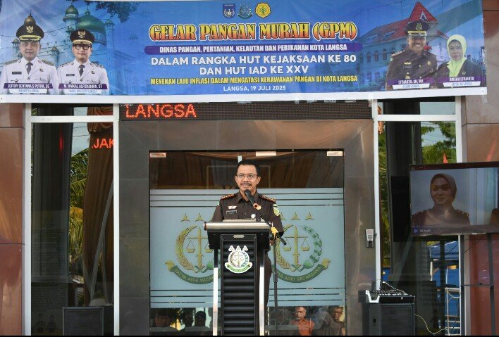 RajaNews.Xyz | Kota Langsa – Pasar Murah dan Bazar Usaha Mikro Kecil dan Menengah (UMKM) kerjasama Kejaksaan Negeri Langsa dengan Pemerintah Kota (Pemko) Langsa dalam rangka memperingati Hari Ulang Tahun Kejaksaan RI ke-80 dan Hari Ulang Tahun Ikatan Adhyaksa Dharmakarini XXV, Sabtu 19 Juli 2024.