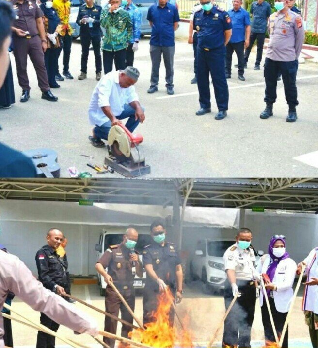 RAJANEWS.Xyz | Kota Langsa – Bea Cukai Langsa bersama Forkopimda dan Aparat Penegak Hukum (APH) lainnya di lingkungan Kota Langsa turut menghadiri kegiatan Pemusnahan Barang Bukti yang digelar oleh Kejaksaan Negeri Langsa.
