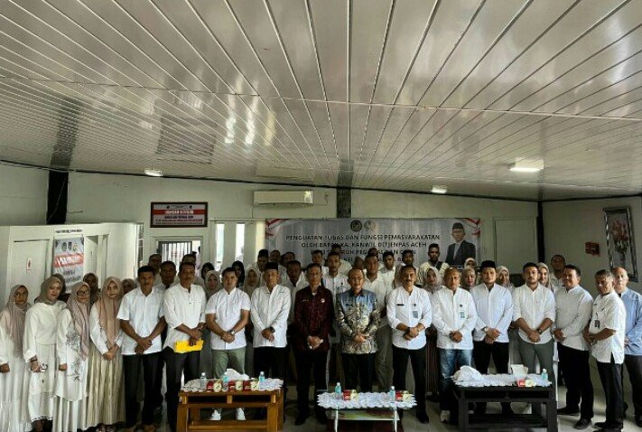 RajaNews.Xyz | BANDA ACEH – Kepala Kantor Wilayah Direktorat Jenderal Pemasyarakatan Aceh, Yan Rusmanto, melaksanakan kunjungan ke Lapas Kelas IIA Banda Aceh dalam rangka memberikan penguatan tugas dan fungsi pemasyarakatan kepada pegawai di lingkungan Lapas Kelas IIA Banda Aceh, jumat (18/07/2025).