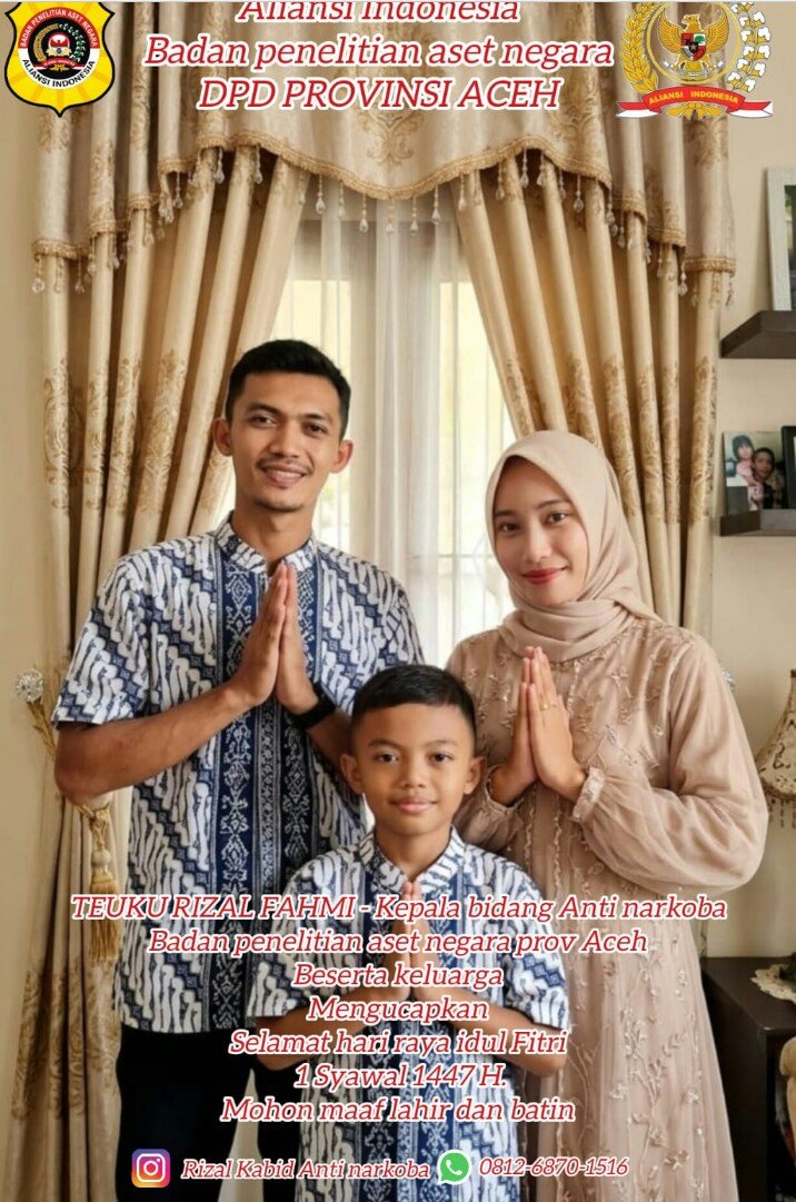RAJANEWS.Xyz | BANDA ACEH – Dalam menyambut Hari Raya Idul Fitri 1447 Hijriah/2026 Masehi, Ketua Bidang Anti Narkoba DPD BPAN Provinsi Aceh, Teuku Rizal Fahmi menyampaikan, ucapan selamat kepada seluruh masyarakat, khususnya di Provinsi Aceh.