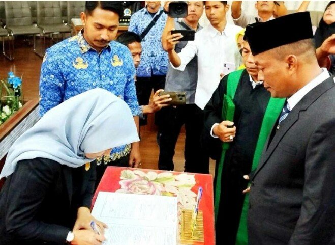 RajaNews.Xyz | KOTA LANGSA – Ketua DPRK Langsa, Melvita Sari, S. AB, melantik anggota Pergantian Antar Waktu (PAW) Dewan Perwakilan Rakyat (DPRK) Kota Langsa periode 2024-2029 , yang digelar di ruang DPRK setempat, Senin (17/03/2025).