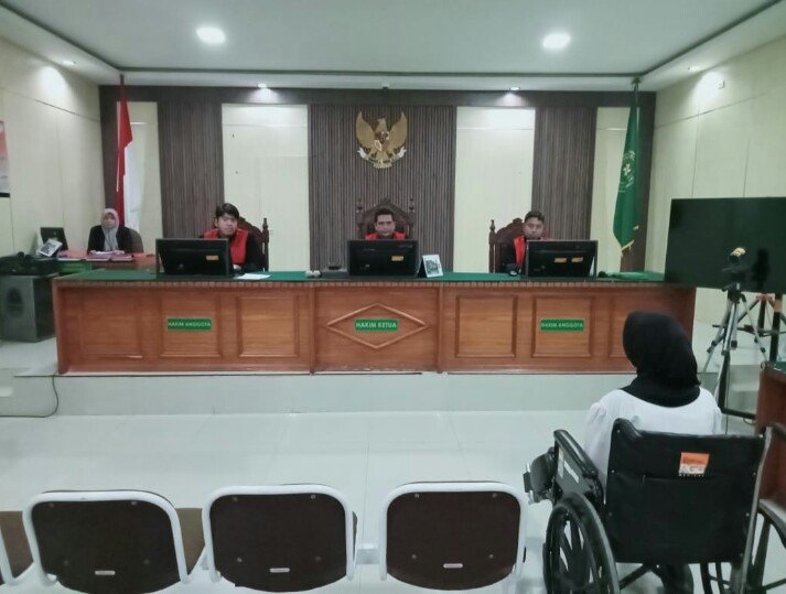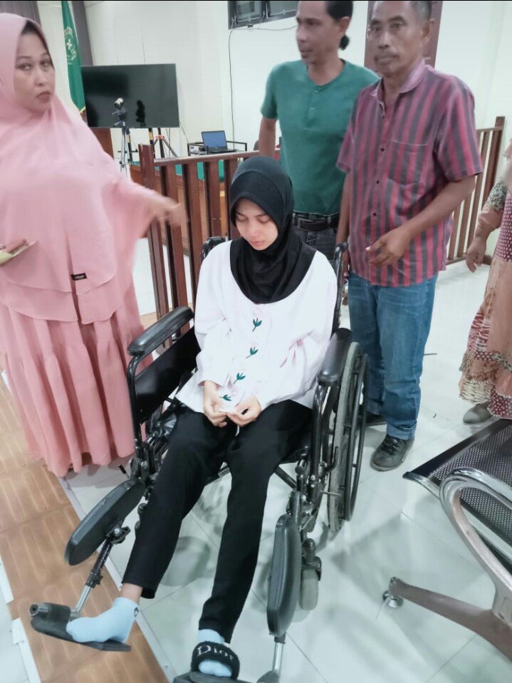 RajaNews.Xyz | Banda Aceh – Kisah mengharukan yang tak terlewatkan dan menjadi perhatian sejumlah awak media , saat JPU dengan rasa empati mendalam menghampiri Massyura diatas kursi roda menenangkan dan menyemangati Massyura yak Tak Kuasa menahan Tangis.