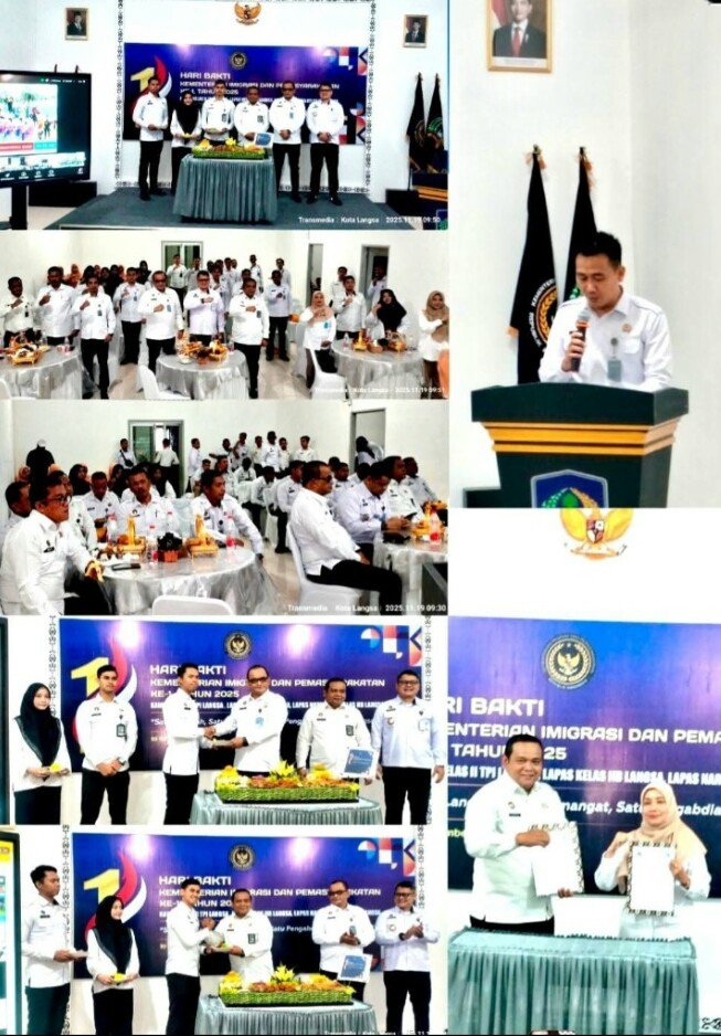 RAJANEWS.Xyz – KOTA LANGSA -Lembaga Pemasyarakatan (Lapas) Narkotika Kelas IIB Langsa Bersama Lapas Kelas IIB Langsa dan Kantor Imigrasi Kelas II TPI Langsa telah sukses menyelenggarakan acara tasyakuran dalam rangka memperingati Hari Bakti Kementerian Imigrasi dan Pemasyarakatan Republik Indonesia Ke-1 di tahun 2025. Mengusung tema yang inspiratif, “Satu Langkah, Satu Semangat, Satu Pengabdian Untuk Bangsa”, kegiatan ini bertujuan untuk memperkuat sinergi dan komitmen seluruh insan pengayoman dalam memberikan pelayanan terbaik kepada masyarakat dan negara.