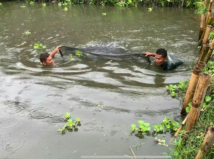 RajaNews.Xyz | Tanjungbalai Asahan – Di bawah bimbingan dan pengawasan Seksi Bimbingan Narapidana (Binadik) serta Sub Seksi Bimbingan Kegiatan Kerja, Lembaga Pemasyarakatan (Lapas) Tanjungbalai Asahan kembali melakukan panen ikan patin. Kegiatan panen ini berlangsung lancar meski di tengah cuaca hujan, dengan hasil panen mencapai sekitar 30 hingga 40 kilogram. Jum’at, (11/04/2025)