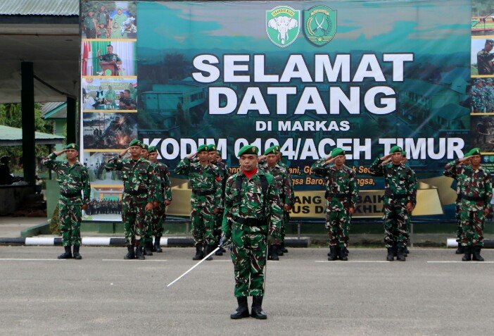 Derap langkah prajurit yang berbaris rapi serta kibaran Sang Merah Putih menambah khidmat pelaksanaan upacara bulanan yang rutin digelar oleh Kodim 0104/Aceh Timur.