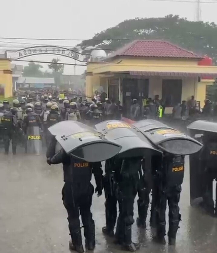 Meski Diguyur Hujan Deras Kapolres Langsa Turun Langsung Kawal Demonstrasi Mahasiswa di DPRK