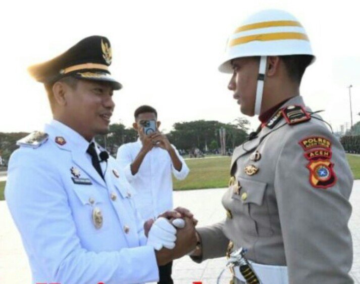 RajaNews.Xyz | ACEH TIMUR – Rangakaian Upacara HUT Kemerdekaan Republik Indonesia Ke-80 Pemerintah Kabupaten Aceh Timur telah selesai digelar Minggu, (17/08/2025). Namun, ada hal yang tak biasa saat Upacara Penurunan Bendera Merah Putih berlangsung. Setelah prosesi upacara tersebut selesai, Wakil Bupati Aceh Timur T. Zainal Abidin, S.Pd.I.,M.H. langsung turun dari tribun dan menghampiri Kapolsek Peureulak Barat Iptu Muhammad Vito Romadhonsyah, S.TrK. selaku Komandan Upacara.