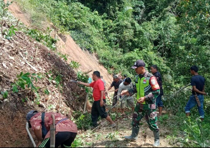 Sementara itu, di Desa Delung Sekinel dan Desa Kute Reje, longsor menyebabkan jalan utama tertutup material tanah dan pohon tumbang. Babinsa Koramil 05/Linge, Serda Tri Jatmiko, bersama masyarakat setempat melaksanakan gotong royong untuk membersihkan material longsor dan memastikan akses jalan bisa digunakan kembali.