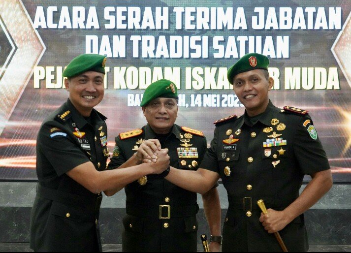Selain melepas pejabat lama, acara tersebut juga menjadi momentum penyambutan bagi pejabat baru yang akan bertugas di jajaran Kodam IM. Letkol Inf Faurizal Noerdin, S.Sos., resmi mengemban jabatan sebagai Komandan Kodim 0101/Kota Banda Aceh. Kolonel Inf Hermansyah, S.H., ditunjuk sebagai Komandan Detasemen Markas Kodam IM. Sedangkan Kolonel Cpm Imran Ilyas, S.H., mengemban tugas sebagai Komandan Polisi Militer Kodam IM, dan Kolonel Caj Taufik, S.Sos., M.Han., menjabat sebagai Kepala Ajudan Jenderal Kodam IM.