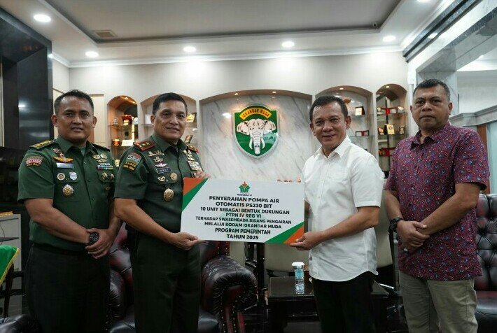 Sebagai bentuk dukungan terhadap kerja sama ini, PTPN IV Regional VI menyerahkan bantuan 10 unit pompa air otomatis PS230 BIT kepada Kodam IM. Bantuan tersebut akan disalurkan kepada masyarakat guna mendukung program peningkatan kesejahteraan dan ketahanan wilayah, sekaligus menjadi bagian dari Program TNI Manunggal Air, yang merupakan salah satu program unggulan TNI AD dalam membantu penyediaan air bersih bagi masyarakat.