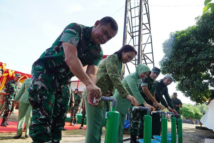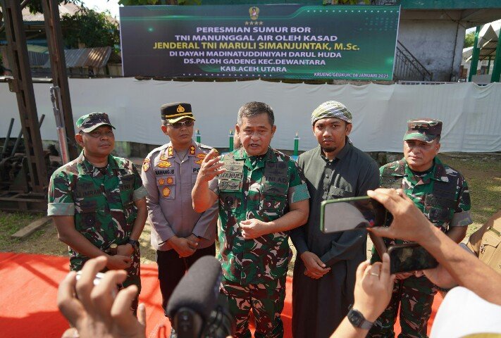 RAJANEWS.XYZ | Aceh Utara – Panglima Komando Daerah Militer Iskandar Muda (Pangdam IM) Mayor Jenderal TNI Niko Fahrizal, M.Tr.(Han), bersama Ketua Persit Kartika Chandra Kirana Daerah IM, Ny. Eva Niko Fahrizal, menghadiri acara Peresmian Sumur Bor TNI Manunggal Air yang dipimpin langsung oleh Kepala Staf Angkatan Darat (Kasad) Jenderal TNI Maruli Simanjuntak, M.Sc. Acara ini digelar di Dayah Madinatuddiniyah Nurul Huda, Desa Paloh Gading, Kecamatan Dewantara, Kabupaten Aceh Utara, pada Rabu (08/01/2025).