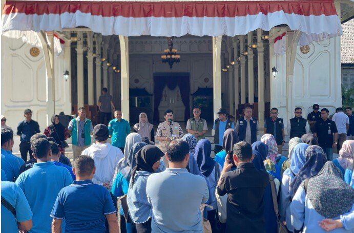Tenaga Cadangan Kesehatan (TCK) Batch IV Kemenkes Foto Bersama Sesaat Pasca Pelepasan ke Daerah Terdampak Bencana Hidrometerologi Aceh, di Meuligoe Gubernur Aceh, Banda Aceh, Minggu, (01/02/2026).