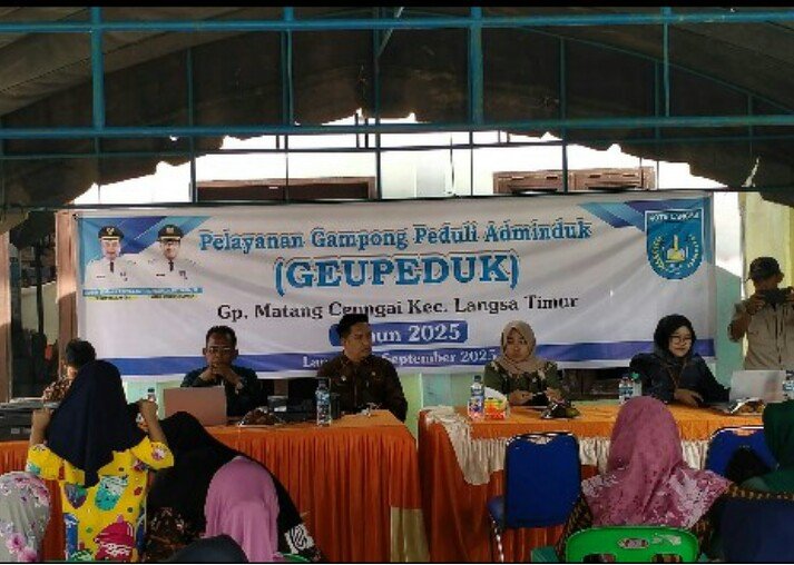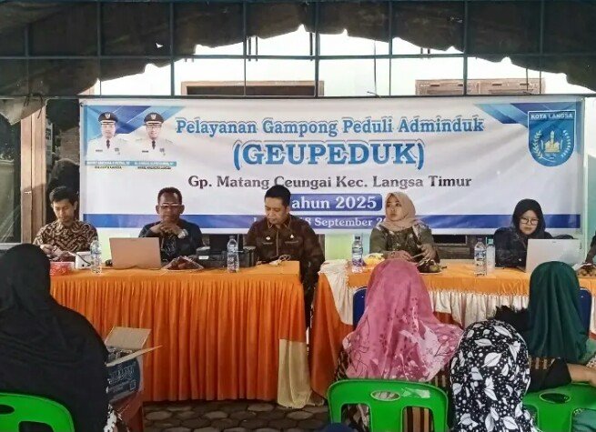 RajaNews.Xyz | Kota Langsa – Pemerintahan Gampong Matang Ceungai bersama Dinas Kependudukan dan pencatatan Sipil (Didukcapil) menggelar GEUPEDUK (Gampong Peduli Adminduk) yang diadakan di Aula Halaman Kantor Geuchik Matang Ceungai, Kecamatan Langsa Timur, Kamis (18/09/2025).