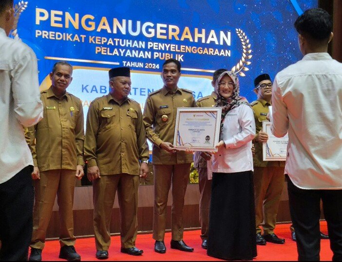 Penghargaan diserahkan langsung oleh Kepala Ombudsman Perwakilan Aceh, Dian Rubianty, S.E.Ak. M.P.A kepada Pj. Walikota Langsa, Dr. Syaridin S.Pd., M.Pd, di Anjong Mon Mata, Banda Aceh, Selasa, (21/01/25).