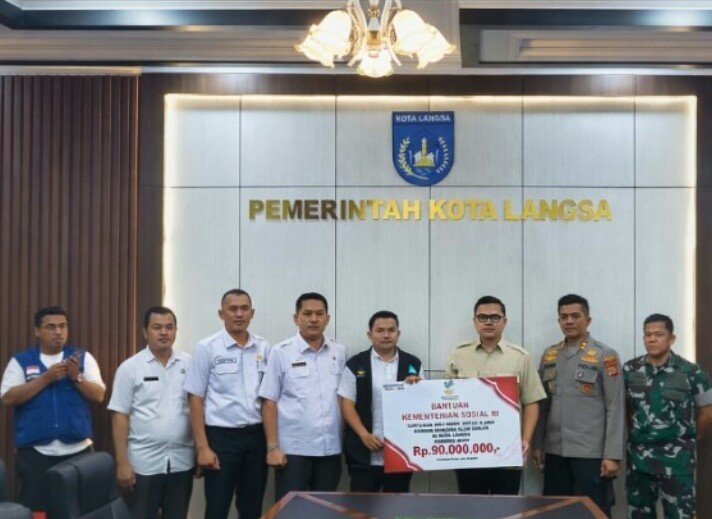 Penyerahan santunan tersebut berlangsung di Aula Walikota Langsa, Rabu (11/3/2026) yang diserahkan oleh Ketua Pokja Pemulihan Sosial Kemensos RI, Hijrah Manfaluty, M.Si., dan diterima secara simbolis oleh Walikota Langsa, Jeffry Sentana S Putra, SE.