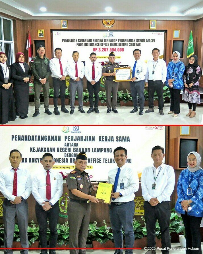 Sebagai informasi keterangan dari Kajari Bandar Lampung Baharuddin.M., SH., MH melalui Kasi Datun, Bambang Irawan, SH.,MH, adapun bentuk sinergitas kita dengan BRI BO Teluk Betung diantaranya, pertama kita melakukan pendampingan hukum tentang tata kelola perbankan melalui sosialisasi hukum dan pemberian materi pendidikan kepada pegawai Bank BRI Teluk betung sebagai upaya pencegahan dan mitigasi resiko dari perbuatan hukum dan/atau Fraud, kedua bantuan hukum adanya beberapa SKK permasalahan kredit macet, ketiga memberikan Pendapat Hukum terkait perbaikan tata kelola perbankkan.