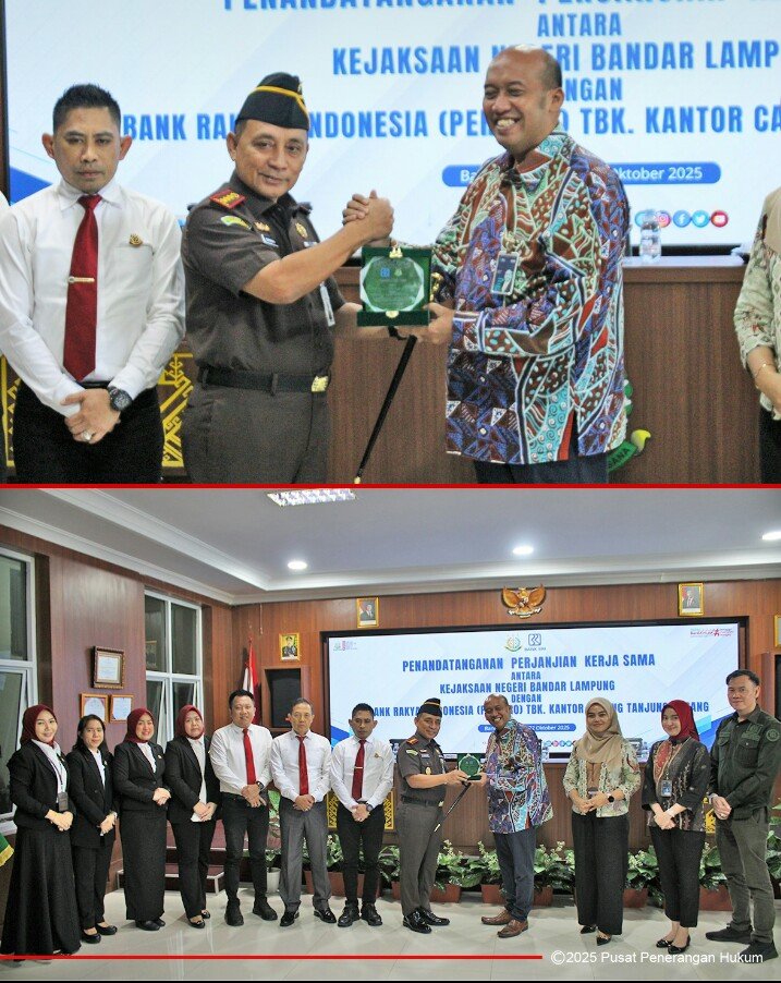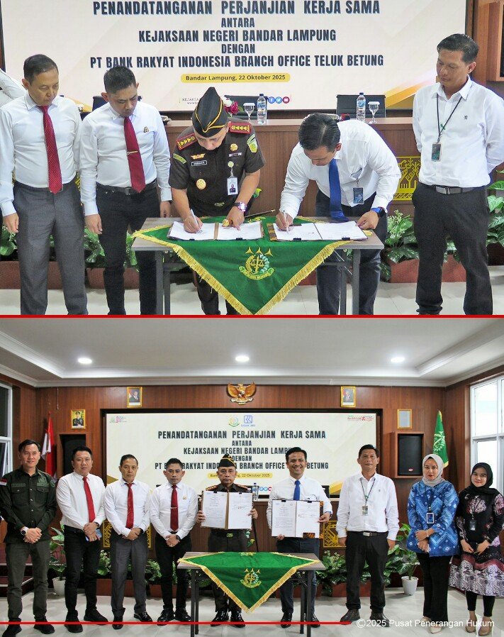 RAJANEWS.Xyz | BANDAR LAMPUNG – Kejaksaan Negeri (Kejari) Bandar Lampung melaksanakan penandatanganan perjanian Kerjasama (PKS) dengan PT Bank BRI Cabang Tanjung Karang tentang penanganan hukum di bidang Perdata dan Tata Usaha Negara (Datun) yang dipusatkan di Aula kantor Kejari Bandar Lampung, pada Rabu (22/10/2025) sekira pukul 10.00 WIB sampai dengan selesai.
