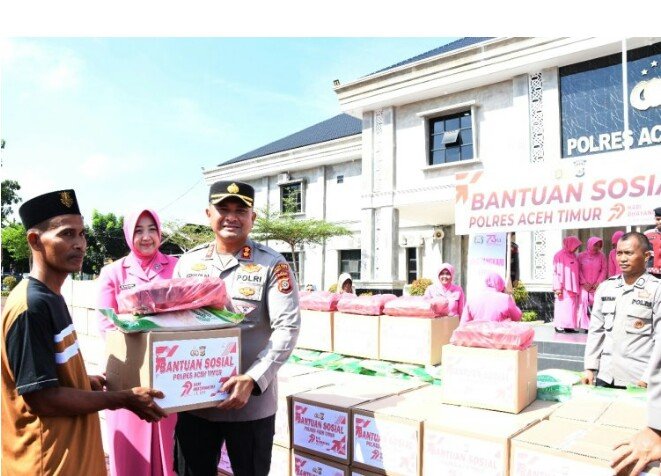 RajaNews.Xyz | ACEH TIMUR – Kepolisian Resor (Polres) Aceh Timur menggelar kegiatan Bakti Sosial dengan menyerahkan 200 paket sembako kepada warga kurang mampu. Penyerahan secara simbolis dilakukan oleh Kapolres Aceh Timur AKBP Irwan Kurniadi, S.I.K. didampingi oleh Wakapolres Kompol Abdul Muin, S.H.,M.M., Ketua Bhayangkari Cabang Aceh Timur Ny. Zilka Irwan Kurniadi dan sejumlah pejabat utama di Lapangan Apel Arja Sarya Racana, Senin, (23/06/2026).