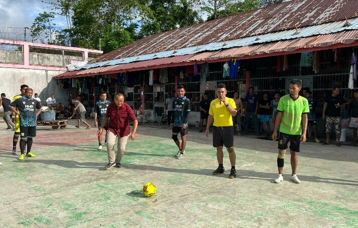 RajaNewsXyz | Aceh Timur – Dalam rangka memperingati Hari Bhakti Pemasyarakatan (HBP) ke-61, Lembaga Pemasyarakatan Kelas IIB Idi menggelar pembukaan Pekan Olahraga dan Seni Warga Binaan bertempat di Lapangan Blok Hunian Lapas Idi, Kegiatan ini dibuka langsung oleh Kalapas, Bahtiar Sitepu dengan didampingi Ka. KPLP Beserta Pejabat Struktural dan Pegawai lainnya, Kamis (17/04/2025).